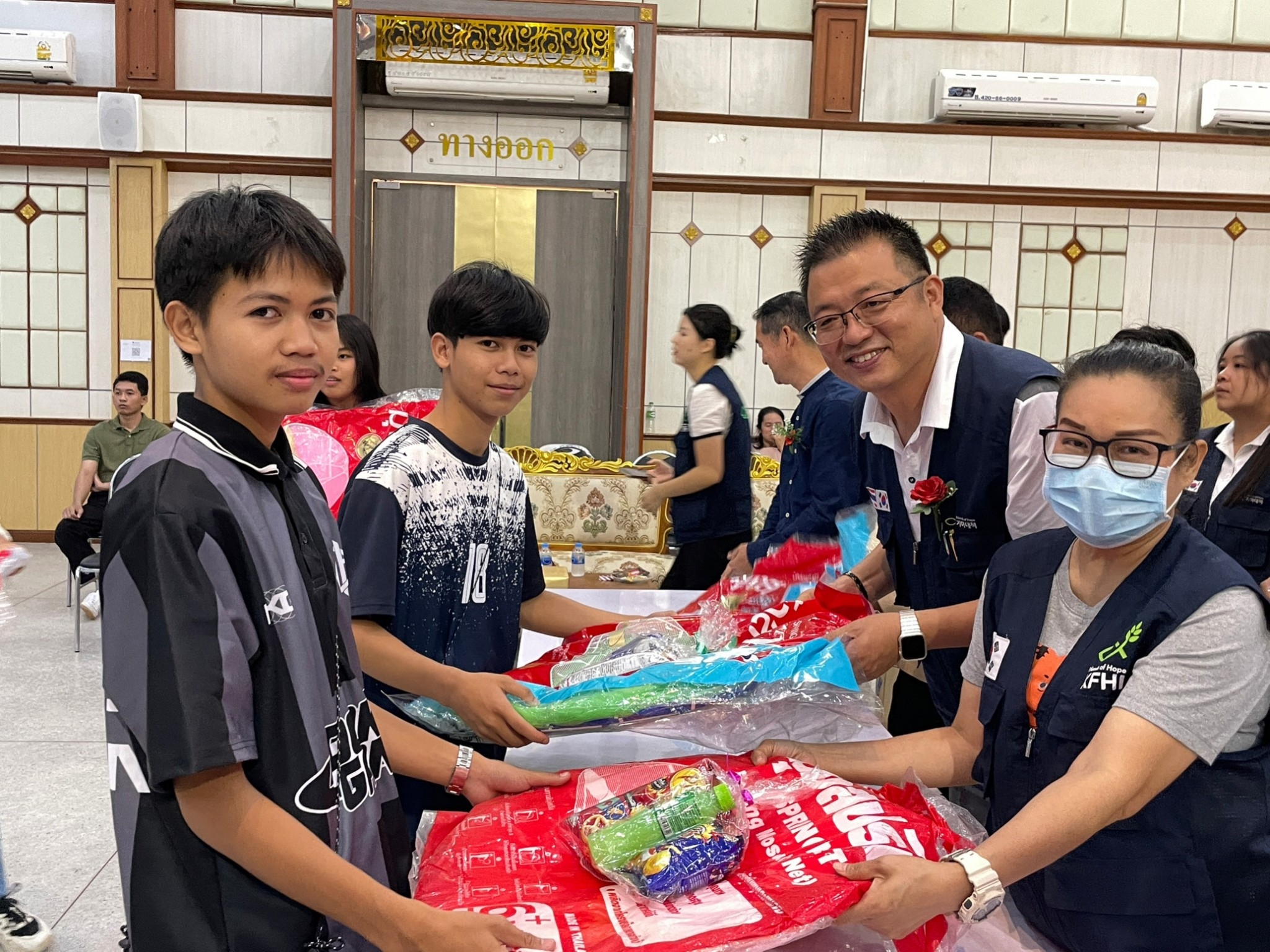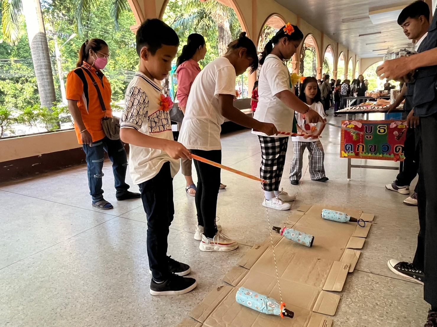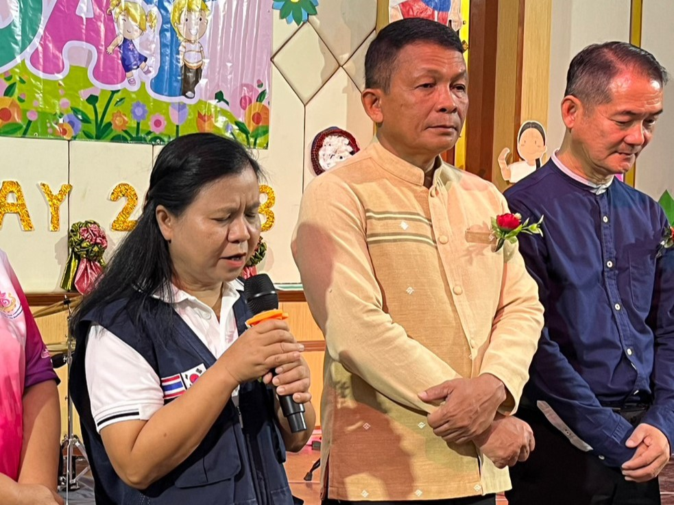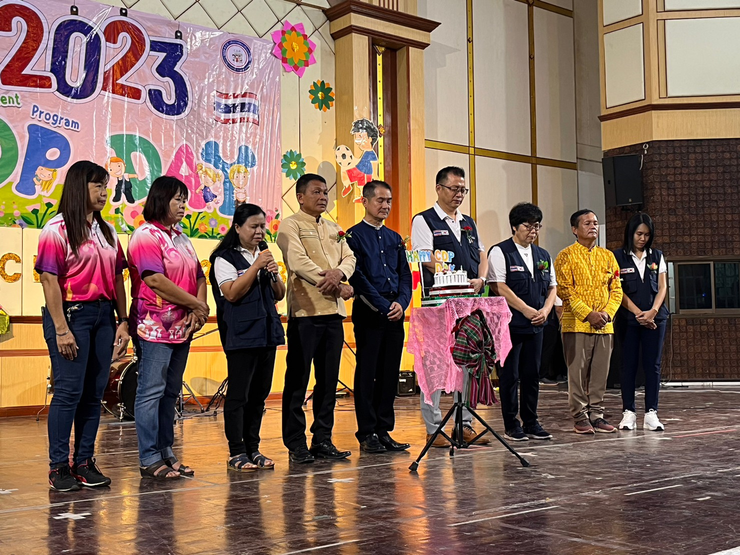 와린 부시장, 던못뎅군수, 우본도청 지역사회개발 계장, 학교장 및 학교 선생님들,