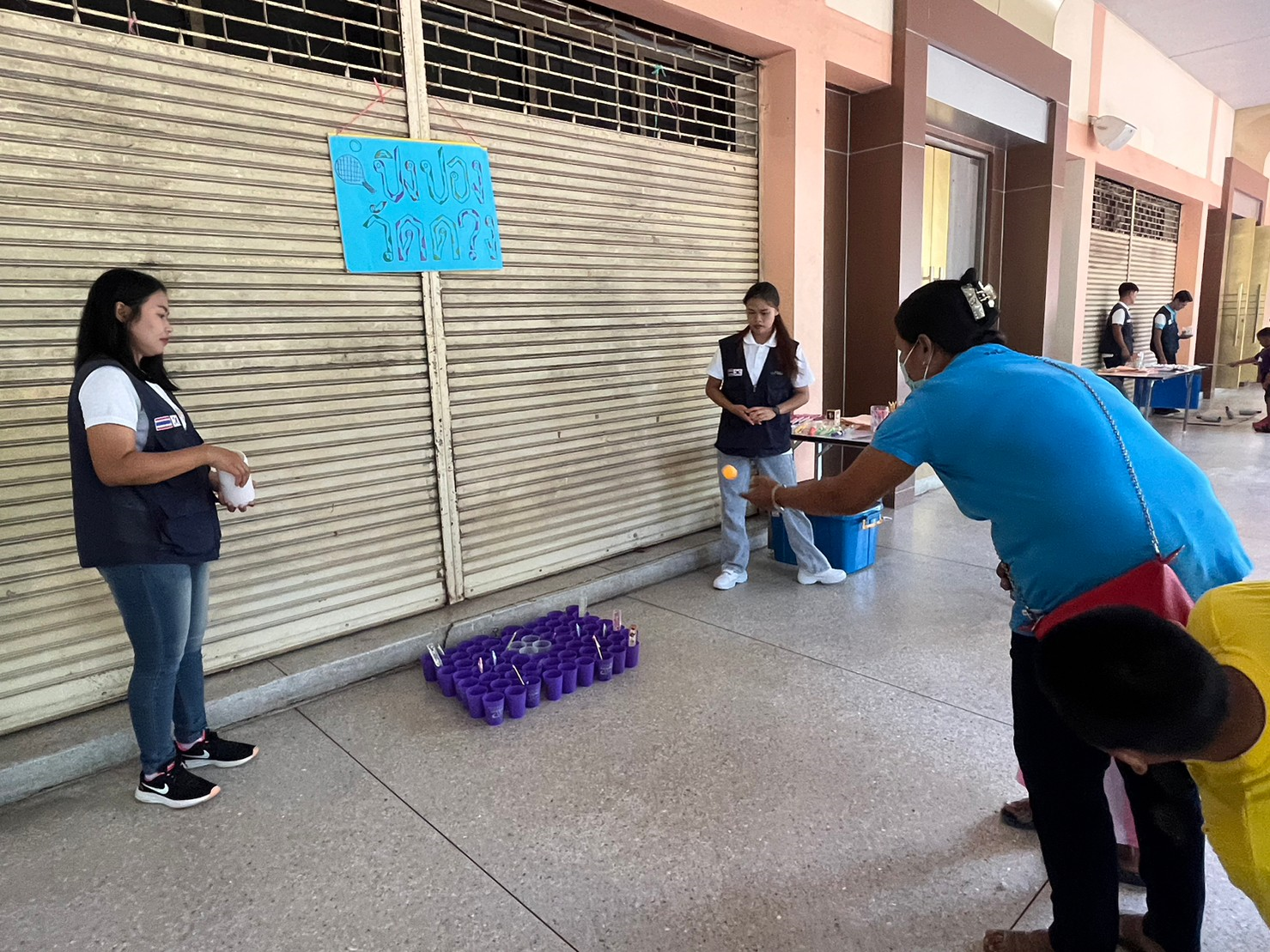 탁구공을 던져서 들어간 컵 안의 내용물을 선물로 증정하였습니다.